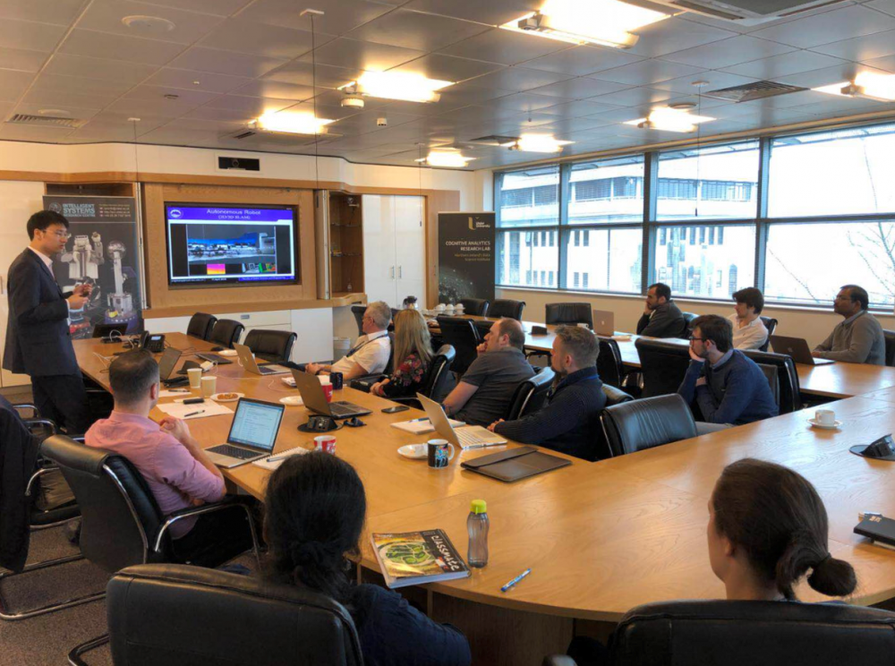4月12日下午吴成东一行前往位于Luton市的贝德福德大学与Dayou Li教授课题组进行了深入的讨论,双方互相介绍了各自的研究方向以及代表性研究课题,在计算机视觉、机器人控制等研究方向达成了一系列合作意向。双方初步达成了2019年欧盟Horizon2020国际交流合作项目的申请意向。
