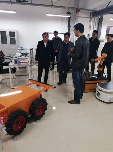在沈阳市智能机器人重点实验室,赵继校长先后听取了自主导航理论与技术平台、智能机器人平台、双臂协同机器人平台、机器人本体设计平台、机器人视觉平台建设的汇报,了解了学院科研实验室及本科教学平台的建设情况,并现场与师生进行深入交流,询问在学院建设过程中遇到的困难与问题,重点关注了学院办学资源使用的情况。