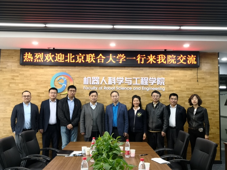 4月27日上午,北京联合大学机器人学院执行院长张建成,机器人工程系系主任夏齐霄,机械系系主任刘伟,教师代表雷保珍一行来机器人学院参观交流。学院常务副院长吴成东、副院长贾子熙参与本次交流。