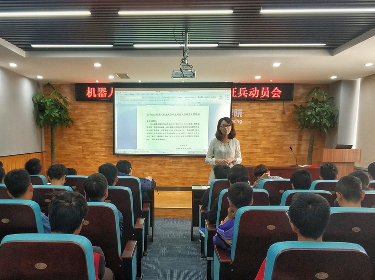 5月15日,机器人科学与工程学院2019年学生应征入伍政策宣讲会在建筑学馆B302举办。辅导员汪青主持会议,全体本科生参会。