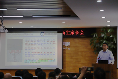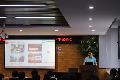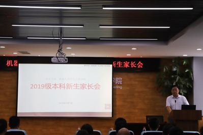 学院常务副院长吴成东、副院长严志刚、贾子熙,班导师王斐、庄曜铭,东北大学心理中心指导教师曲慧东等出席家长会,会议由学生工作办公室主任张孟新主持。会上,吴成东首先代表全院师生向各位新生家长表示热烈的欢迎。随后,曲慧东就大学生心理健康发展与家长展开交流。然后,贾子熙向各位家长介绍了学院的基本情况以及教育教学情况,以及专业研究领域与成果。严志刚老师就学院教育、管理、指导、服务和素质拓展等学生工作的主要职能以及如何做一名大学生家长与大家进行了交流,并介绍了本学院家校联动机制。最后,最后,学院优秀本科生代表、机器人1602班白帆同学跟新生家长们汇报了自己入学三年来在机器人学院这一全新环境中发展成长的经历。相信通过此次家长会,各位家长对机器人学院都有了更加深刻全面的了解,也增强了对机器人学院成才教育的信心。