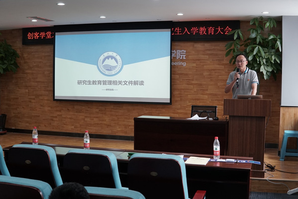 吴成东致辞,他首先代表全院教职员工向各位新生的到来表示热烈的欢迎,并对同学们的未来学习与科研生活提出了殷切期望,希望同学们可以充分利用学院的先进设备努力钻研,不辜负学海生涯。随后,贾子熙进行学院介绍、学风建设宣讲,鼓励同学们戒骄戒躁、努力创新。学院所有研究生导师详细介绍了各自的研究方向,帮助学生了解专业领域,把握研究重点。欧阳恒岳为同学们详细解读了东北大学研究生规章制度及管理条例。会议最后,严志刚对学生进行安全教育,并安排后续工作。