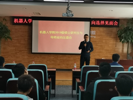 10月12日上午,机器人学院2019级硕士研究生与导师双向选择见面会在浑南校区建筑学馆B302举行。机器人学院常务副院长吴成东、教学副院长贾子熙、新松机器人中央研究院副总工程师宋吉来、新松机器人人力资源部高级招聘经理胡博、学院研究生导师们及全体2019级硕士研究生参会,会议由学院教学秘书冯德慧主持。