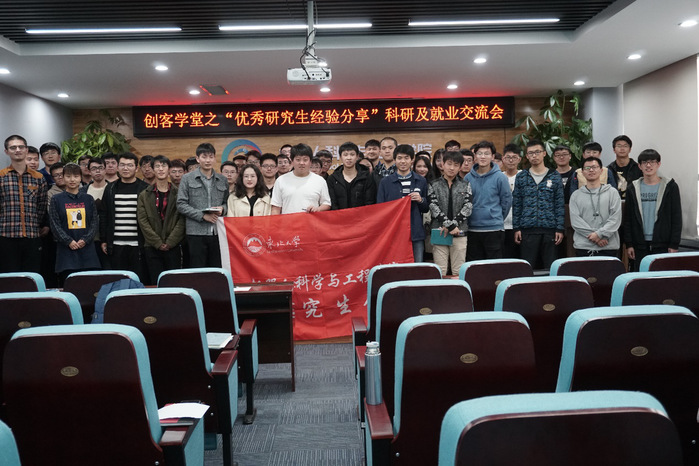 会上,各个嘉宾从就业和科研两个方面分享了自己的相关经验,给现阶段经历迷茫期的研究生同学指点迷津。其中,刘玉强和于凌舟依据自身的经历,分别就学术科研和留学经验给同学们提出合理化建议,表示平时学习中要多阅读高质量水平论文,为自己的学术论文提供坚实的基础积累。其他嘉宾介绍了实习就业经历,帮助与会者明确未来的就业方向,并且表示需要提早做好自己的职业或者继续深造规划。问答环节中,在座观众咨询心中关于学术和就业的迷惑,嘉宾们热心细致进行解答,现场的学术氛围十分浓厚。会后,与会者纷纷表示所学甚多,感谢师兄师姐们的细心答疑,倾囊相授。