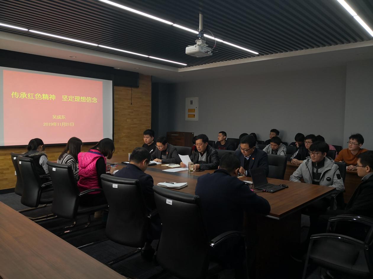 2019年11月21日上午,机器人学院开展“不忘初心、牢记使命”讲党课学习活动,常务副院长吴成东以“传承红色精神,坚定理想信念”为主题讲党课,学院教师代表、博士生党员、学生代表参加了党课学习。