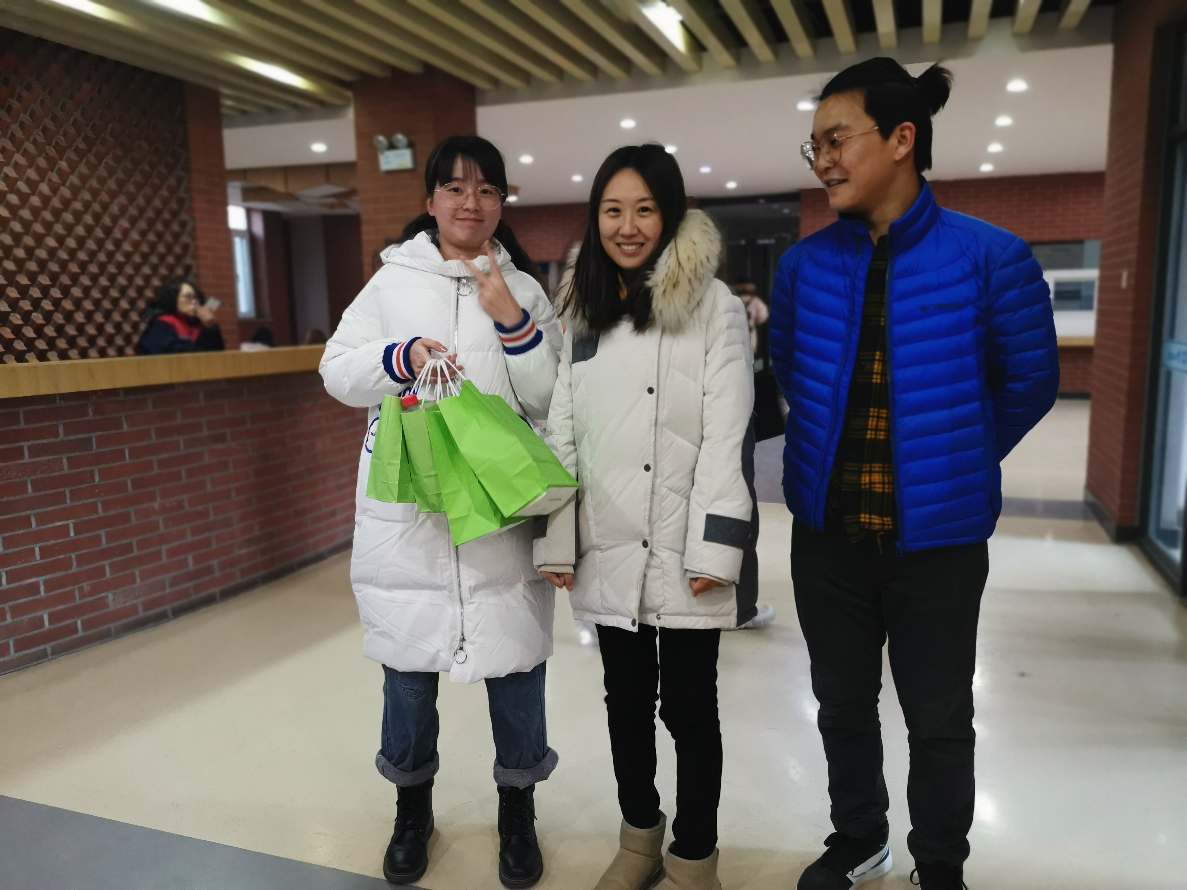 支部书记张孟新老师和辅导员汪青老师带领大家深入建筑学馆、文管学馆、1号教学楼的考研教室,将爱心送到每一位考研学生的书桌上。老师们详细询问了考研学生目前的准备情况,勉励同学们把握好最后冲刺阶段,调整心态,科学复习,全力以赴做好备考。此次暖心行动,不仅有辅导员老师对每一位考研学子的暖心寄语,希望他们能一“绿”通畅,心想事“橙”,考试“要过”(腰果),党支部还根据每一位学子的喜好定制了暖心饮品,发放了考研文具幸运礼包。