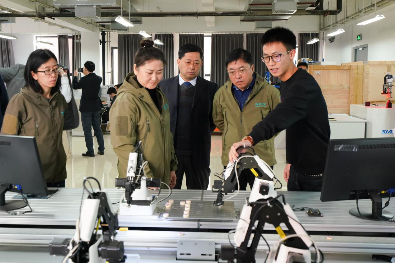 签约仪式结束,校企双方代表前往机器人学院实验室参观,与师生互动交流。大家对机器人学院“做中学”的实践教学模式、雄厚的师资力量以及一流的科研实验室条件给予了高度赞赏。