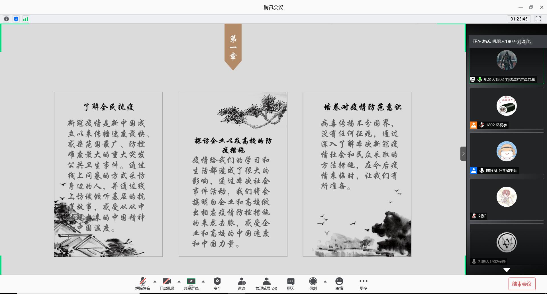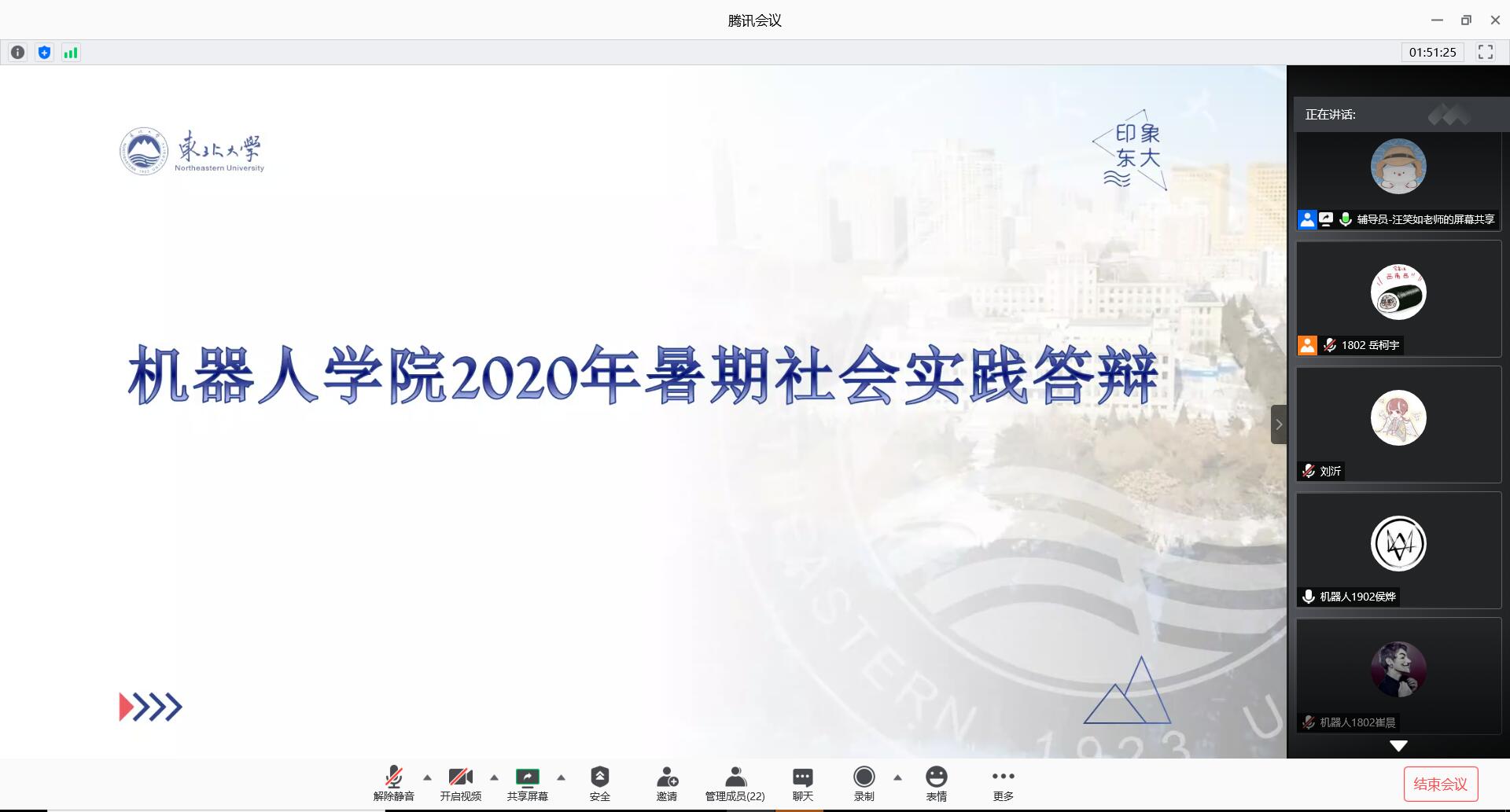 7月20日,机器人科学与工程学院通过腾讯会议平台举办2020年暑期社会实践答辩会。学生工作办公室主任张孟新、辅导员汪青出席会议。学院学生会代表作为评委出席活动。