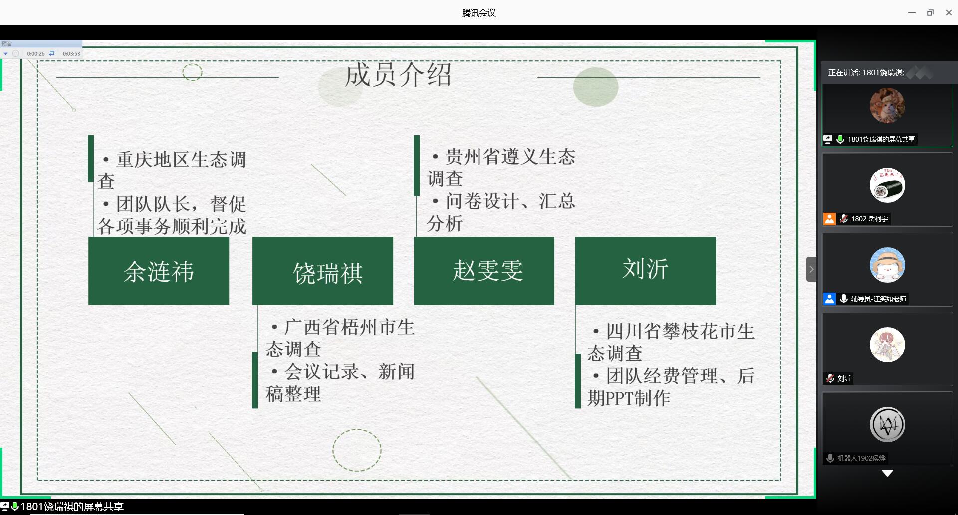汪青根据实践团队的立项书内容、PPT制作等进行点评,提出修改意见。