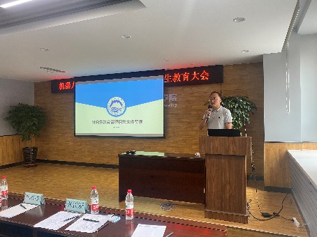 2020年9月6日,机器人学院2020级研究生开学第一课暨新生教育大会在建筑学馆B302成功举办。参加此次活动的有东北大学研究生院教育管理办公室老师欧阳恒岳,机器人学院副院长严志刚,副院长贾子熙,学生工作办公室主任张孟新,综合办公室老师冯德慧,学院研究生导师。会议由严志刚副院长主持。