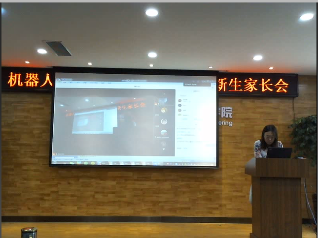 优秀本科生代表机器人1802班杨林涛同学向新生家长们汇报了自己入学两年来在机器人学院的发展成长经历。