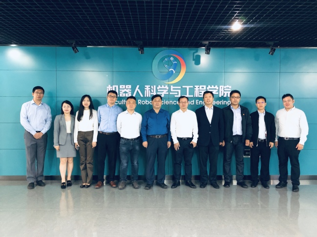 9月23日上午,华为技术有限公司北京研究所副所长江长虹、网络产品与解决方案招聘调配部长魏春永、2012实验室招聘调配部长王疆等一行八人到机器人学院参观调研。东北大学对外联络与合作处处长李鹤、校友联络与服务办公室主任马亮,工业人工智能研究院副院长付俊教授陪同参观,机器人学院常务副院长吴成东、副院长贾子熙、院长助理姜杨以及学院教师代表参与接待。