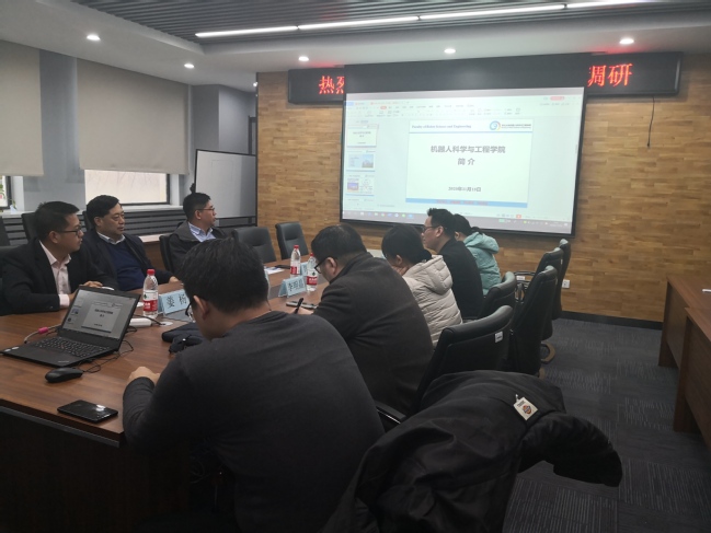首先,贾子熙致欢迎辞,对长春大学一行的到来表示热烈欢迎,并就学院基本情况作简要介绍。紧接着,孙向阳也介绍了长春大学大学电气工程与自动化学院的基本情况,并表示学院新设立了即将通过中韩合作新建电子工程专业,为此特来学习借鉴我院机器人专业的成功经验。随后,双方就实验室建设、培养方案与实践教学等方面进行热烈讨论。