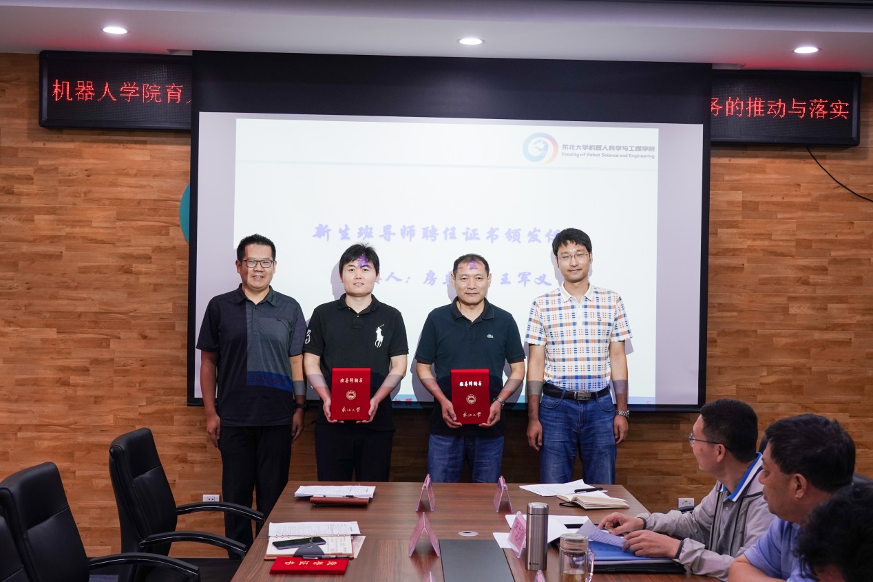 房立金、王军义两位新生班导师在发言中表示,将秉承机器人学院班导师的优良传统,在教学、指导、科研团队组建等过程中,与辅导员建立联动反馈机制,关心学生的学习生活,帮助本班学生把握好自己人生方向,做到一个不掉队。