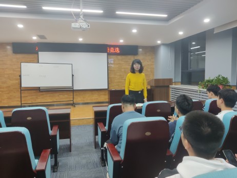 辅导员汪青从学习情况、工作经历、工作心态、处事风格四个方面对竞选者提出要求。她指出竞选者要有服务意识,愿意并且有能力奉献出自己的时间、精力服务大家。
