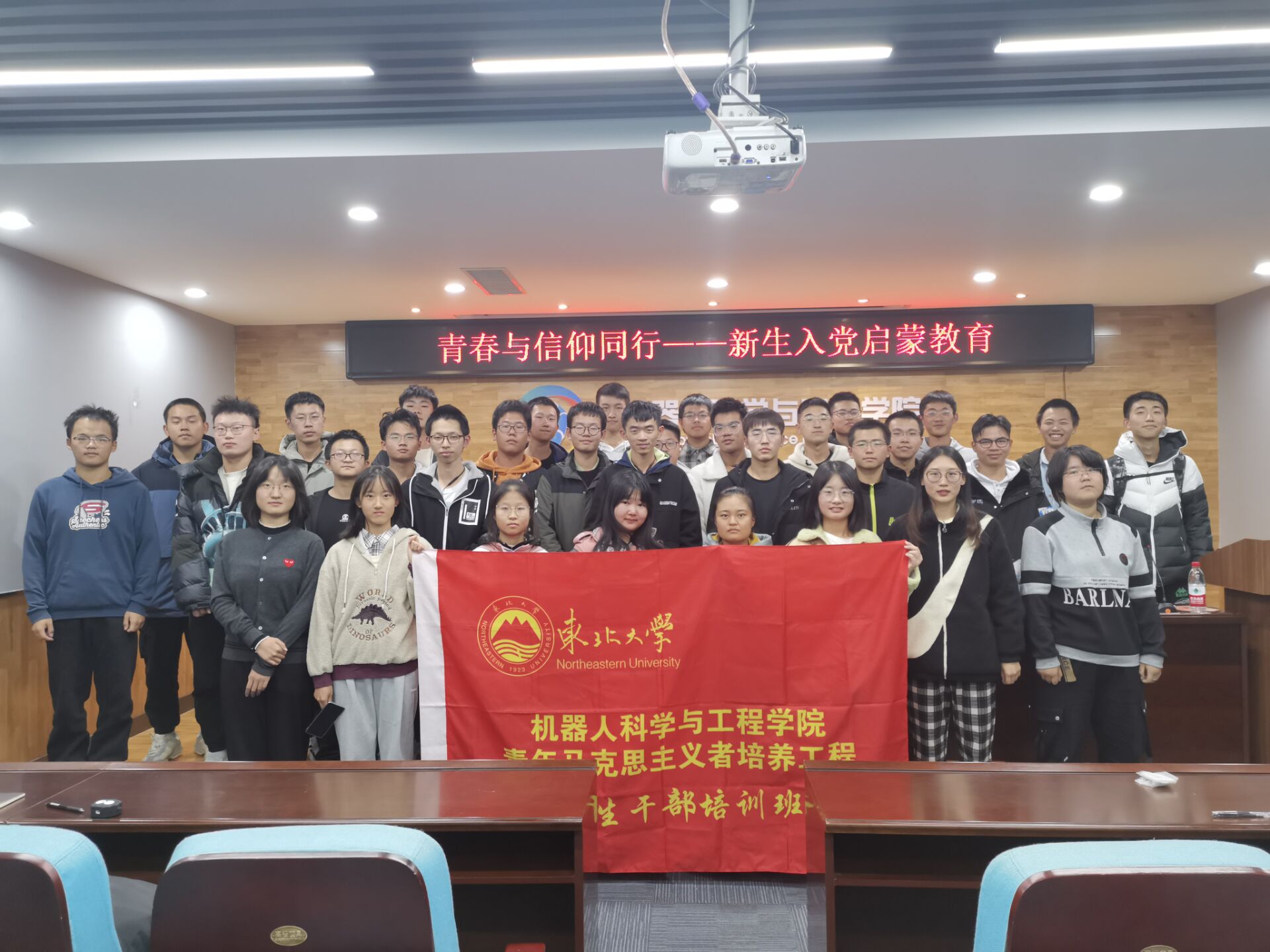 10月21日,机器人科学与工程学院 “青年马克思主义者培养工程”第四期学生骨干培训班之新生入党启蒙教育在浑南校区建筑学馆B302举办。辅导员王路宁作“青春与信仰同行,新生入党启蒙教育”主题讲座。
