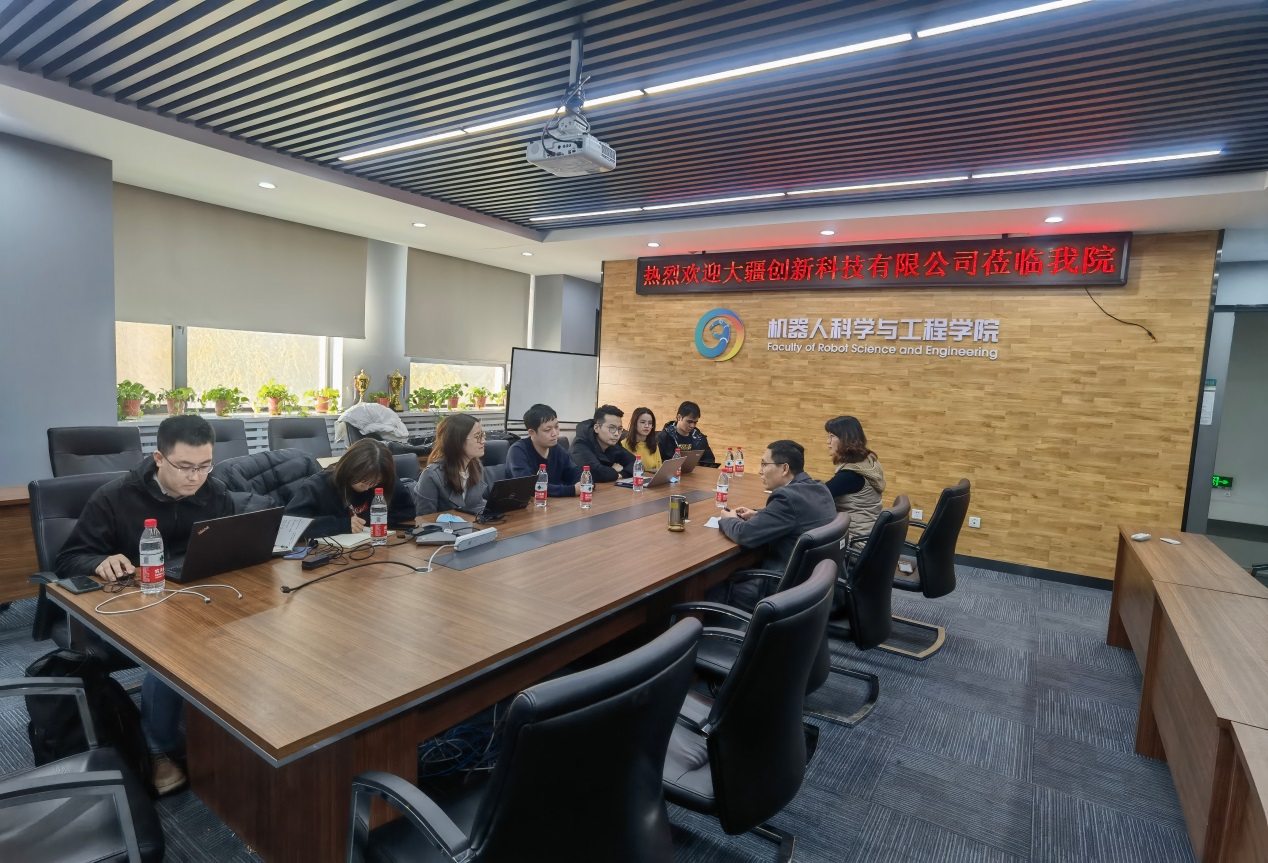 严志刚对大疆创新科技有限公司一行人的到来表示热烈欢迎。他介绍了机器人学院概况,重点阐释了机器人学院本科、硕士、博士培养模式、毕业生去向等。他表示,机器人学院曾经在2017年走访了大疆创新科技有限公司,对充满干劲的企业文化印象深刻。辅导员介绍了2022届毕业生概况,讲述了毕业生需求。双方就校企合作进行了交流,希望有机会在人才培养、科研项目、实验室共建等方面深度合作。