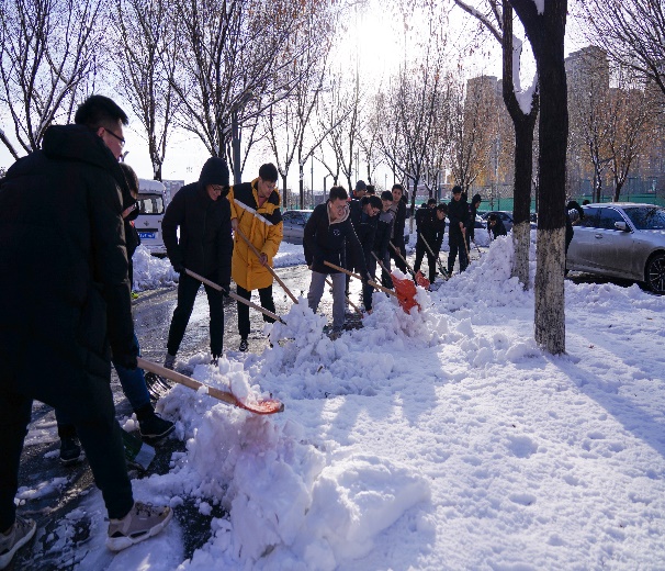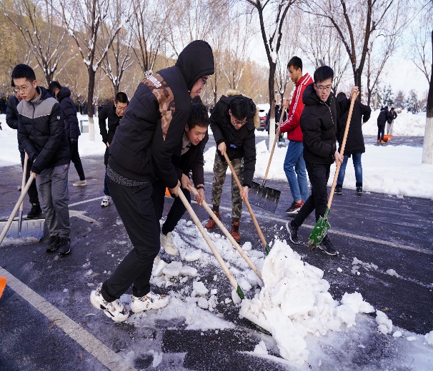 为确保广大教职工和学生的出行安全,2021年11月10日,学院组织教师党支部、本科生党支部、硕士2019党支部、硕士2020党支部、硕士2021党支部党员及学生志愿者积极开展除雪行动。经过大家团结协作、互帮互助,有序地清理了道路积雪、铲除路面结冰,为广大师生安全出行提供了保障。本次活动充分展现了党支部的战斗堡垒作用和党员的先锋模范作用,也是党员同志从身边事做起、为师生服务的生动实践。