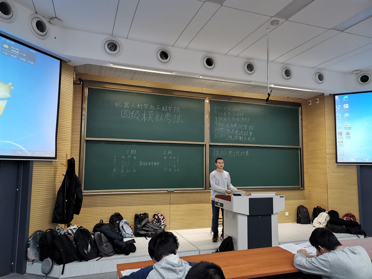 2021年11月28日上午,机器人科学与工程学院英语四级模拟考试在1号楼A105成功举办, 2021级全体新生参与。