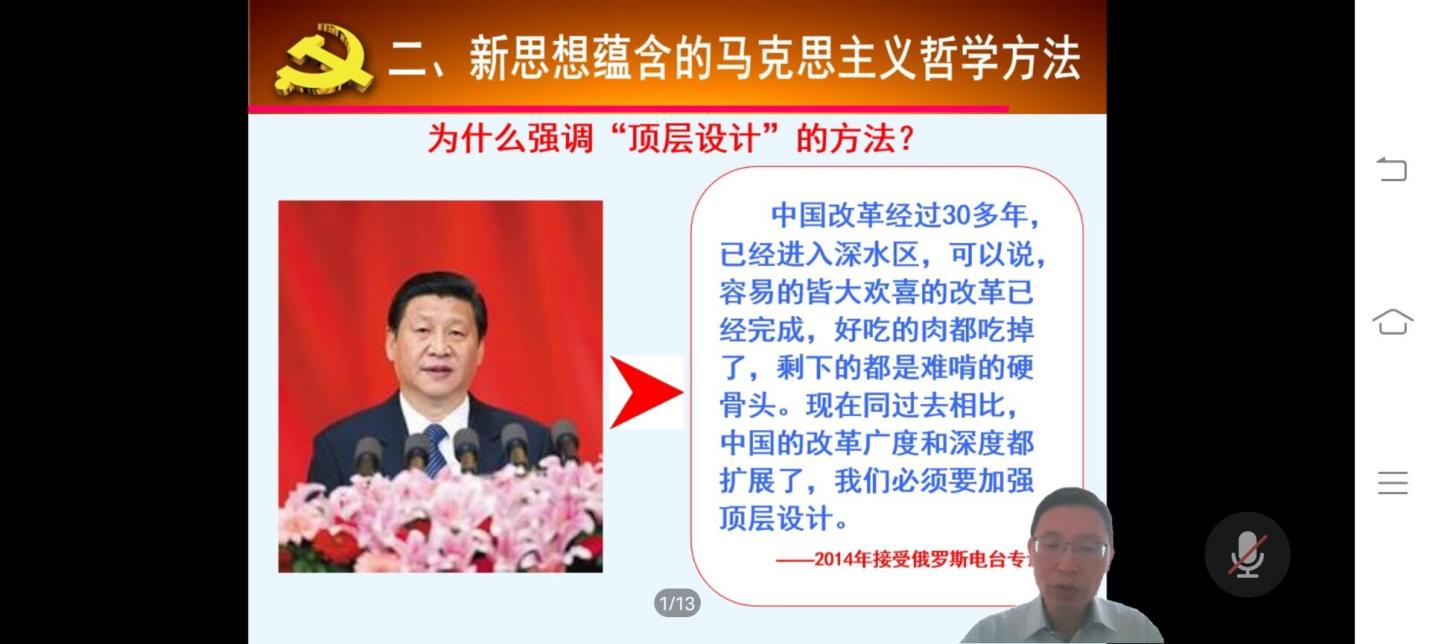 日前,机器人科学与工程学院依托腾讯会议平台成功举行优秀辅导员讲师团巡讲活动,副院长严志刚为2020和2021级本科生作《学习习近平新时代中国特色社会主义思想,领略马克思主义哲学基本方法》专题讲座。