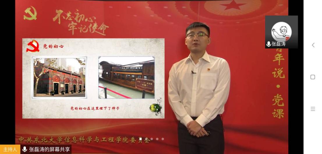 首先张磊涛和夏凯同学讲述了主题为“疫情期间的火线入党”的一段小故事。在疫情防控工作开展以来,各地充分发挥党建工作在战“疫”中的引领作用。故事中人物有医生、警察、消防员、普通群众等,他们紧紧跟随党组织,义无反顾投身疫情防控一线,在与病毒的战斗中坚定了理想信念,用自己的突出贡献接受了组织的考验,成为党组织的新鲜血液和有生力量。