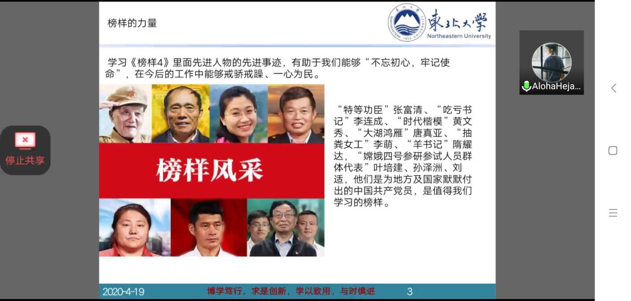 为深入学习贯彻落实习近平总书记的重要指示,机器人科学与工程学院2019级硕士生党支部(下文简称“党支部”)于2020年4月19日举行了“中国共产党入党誓词的历史沿革”主题教育系列活动,结合“青年说·党课”内容,组织网络学习,引导广大学生党员肩负起时代赋予的使命和责任,与祖国共命运、与时代同步伐、与人民共奋斗!党支部全体党员参加了此次活动会议,会议由支部书记张磊涛主持。