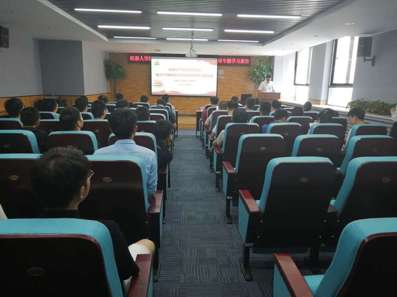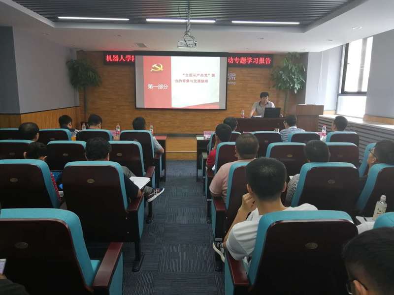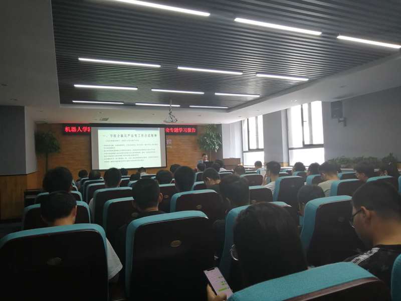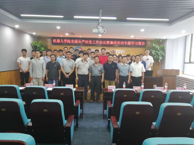 6月19日,机器人学院于浑南校区建筑学馆B座302会议室举行全面从严治党工作会议暨2019廉政文化活动月专题学习报告会,校纪委办公室[监察室]副主任边久民,学院领导班子成员及全体师生党员共同参加了会议。会议由机器人学院党支部书记姜杨主持。