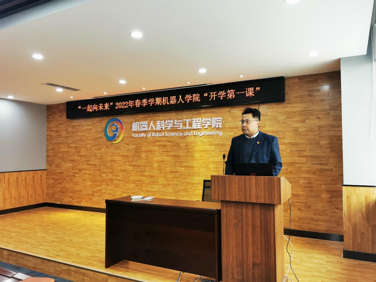 2022年3月10日,机器人学院2019级本科生在浑南校区建筑学馆B302召开新学期年级会议。机器人学院副院长范松涛,1901班班导师王斐,综合办副主任冯德慧,2019级辅导员张孟新和年级全体学生参加了会议。会议由张孟新主持。