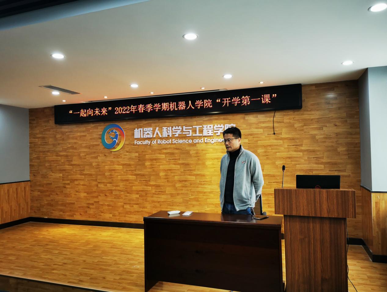 2022年3月10日,机器人学院2019级本科生在浑南校区建筑学馆B302召开新学期年级会议。机器人学院副院长范松涛,1901班班导师王斐,综合办副主任冯德慧,2019级辅导员张孟新和年级全体学生参加了会议。会议由张孟新主持。