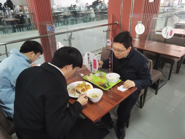 学院留校党员干部、学生工作干部与同学们同吃同住,深入学生食堂,了解疫情防控期间学生生活情况,全天候给予同学们关心与守候。与学生同吃同住中,更能全面摸排、精准掌握学生的健康动态,将对学生的思想价值引领潜移默化到日常生活中,将疫情防控工作和学生思想工作落实、落细、落地。