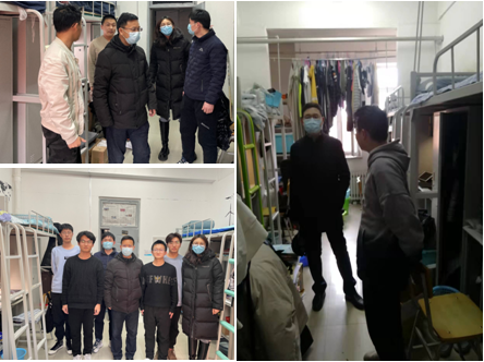 在每日走访寝室过程中,学院领导与学生亲切交流,悉心询问学生线上学习生活情况以及遇到的困难和问题,叮嘱学生严格遵守学校疫情防控要求,积极配合校院疫情防控工作部署;快速适应网课学习,加强与任课老师的线上互动,提升自我管理能力;保持积极乐观的心态,加强体育锻炼,提升身体素质。在走访低年级宿舍时,付俊鼓励学生坚定理想信念,勇于打破常规,尽早做好学涯规划。在走访毕业生宿舍时,严志刚就毕业生的学习、生活、考研、工作等问题与学生交流,鼓励学生适应新情况,优化时间安排,高质量完成毕业论文任务,为自己的大学四年划上一个圆满的句号。