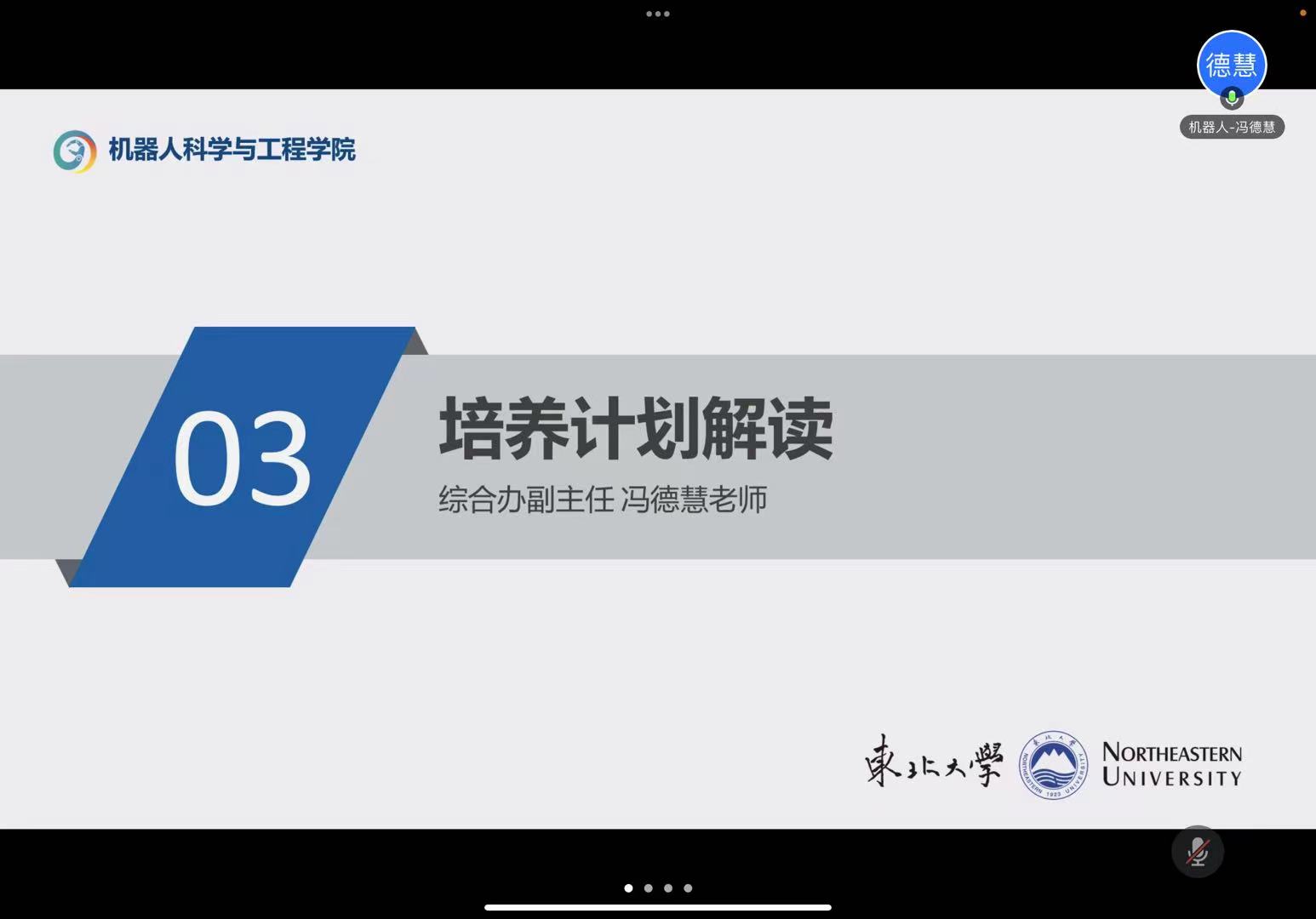 冯德慧为学生介绍了教务系统的各项功能,详细解读了机器人工程专业的培养计划。她提醒学生用好学业预警功能,统筹规划应修学分,建议学生合理分配权重值,避免出现“没课上”的情况。