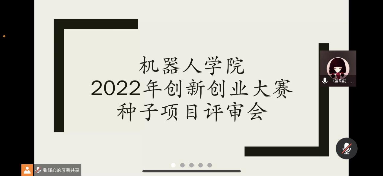 4月24日,机器人学院依托腾讯会议的方式,在线上成功举行2022年创新创业大赛院级种子项目答辩会,参加答辩会的评委老师有机器人学院副院长贾子熙、严志刚,专任教师纪鹏、闻时光、庄曜铭,学生工作办公室主任张孟新,辅导员王路宁以及所有参赛成员。会议由张孟新主持。