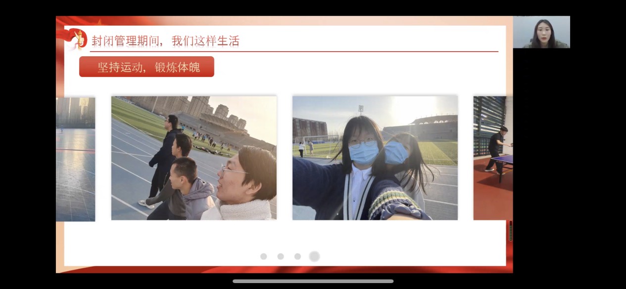 最后,王路宁展示班级同学封校期间日常生活照片集锦,希望各位同学能够继续利用这段时间,好好努力,脚踏实地,积蓄力量,厚积薄发。