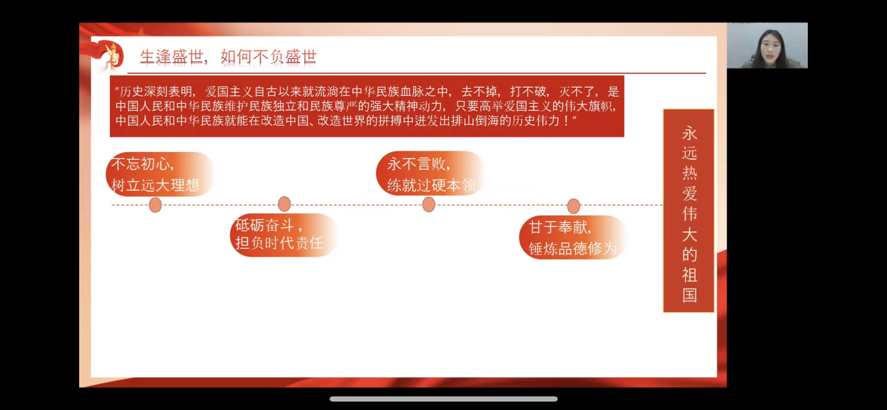 此次班会回顾了2022年以来国家取得的傲人成绩,也一同探讨了在傲人成绩背后青年一代贡献了怎样的力量,明确了时代对青年人的要求。班会上,同学们积极思考、踊跃讨论,同学们纷纷表示将以本次学习为契机,对照习近平总书记对青年人提出的六点希望,深刻领悟中国共产党人的初心和使命,承诺不止是思想上得到升华,更会在行动上有所体现,真正做到生逢盛世而不负盛世,生逢其时而奋斗其时,以实际行动践行爱国情、报国志,献礼党的二十大,为实现中华民族伟大复兴的中国梦而不懈奋斗。