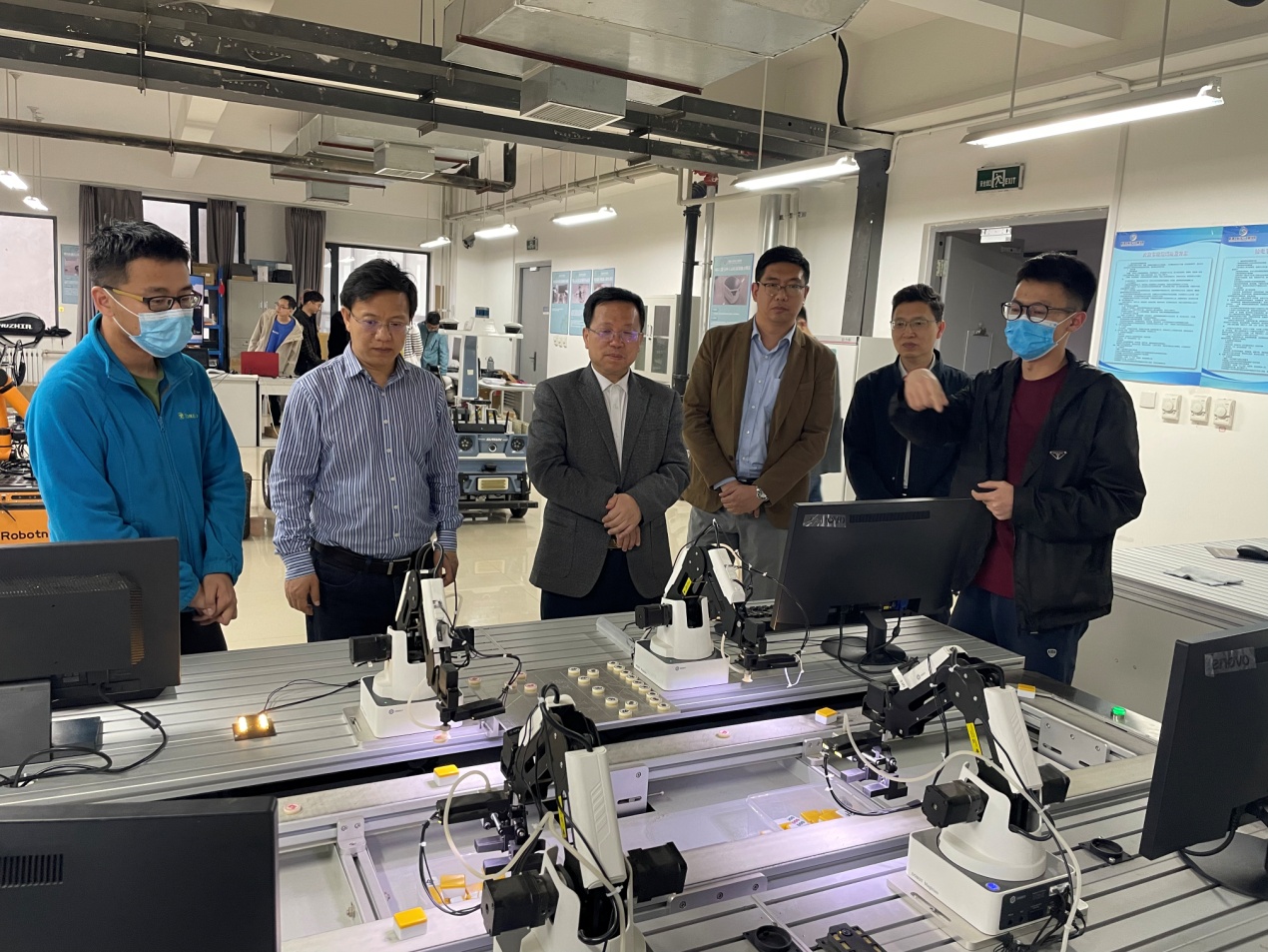 调研期间,唐立新参观了移动机器人实验室、仿人机器人实验室、康复机器人实验室和智能协作机器人实验室的成果展示,并与学院师生进行了深入交流。