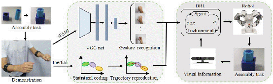 在机器人自主编程方面,研究成果“Joining Force of Human Muscular Task Planning with Robot Robust and Delicate Manipulation for Programming by Demonstration”在国际机器人领域顶级期刊《IEEE/ASME Transactions on Mechatronics》(中科院一区、JCR一区)上正式发表。该项成果通过研究解决机器人非结构环境下的演示者自然行为辨识、复杂力/位混合装配过程建模与装配技巧的自主编程等科学问题,形成了一套完整的机器人柔性装配理论和技术,实现非结构化环境下的多种类、精密高效的人-机协作装配(图2)。此项研究将能够降低机器人使用门槛,拓展工业机器人在电子制造领域应用,提高产品的生产效率与产品质量。具有十分重要的理论研究价值和潜在的市场应用价值。