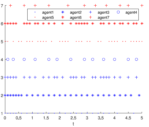 图3跟随者的事件触发时刻以及领导者和跟随者的状态误差
