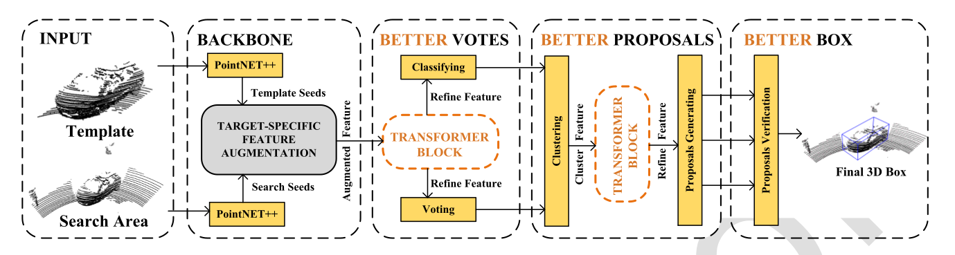 在移动机器人智能导航方面,研究成果“Real-time 3D Single Object Tracking with Transformer”被多媒体领域国际顶级期刊《IEEE Transactions on Multimedia》(中科院一区Top,JCR一区)录用,将于2022年末正式出版。该成果旨在研究移动机器人在三维点云场景下的目标跟踪任务。通过探究三维点云数据稀疏特性给目标跟踪带来的挑战,该项研究提出了将孪生网络以及Transformer结构有机结合的PTT-Net网络(图1),有效地解决了远距离或遮挡情况下点云过于稀疏而导致目标跟踪效果不佳的问题,对于推动智能机器人环境感知研究发展具有重要价值。