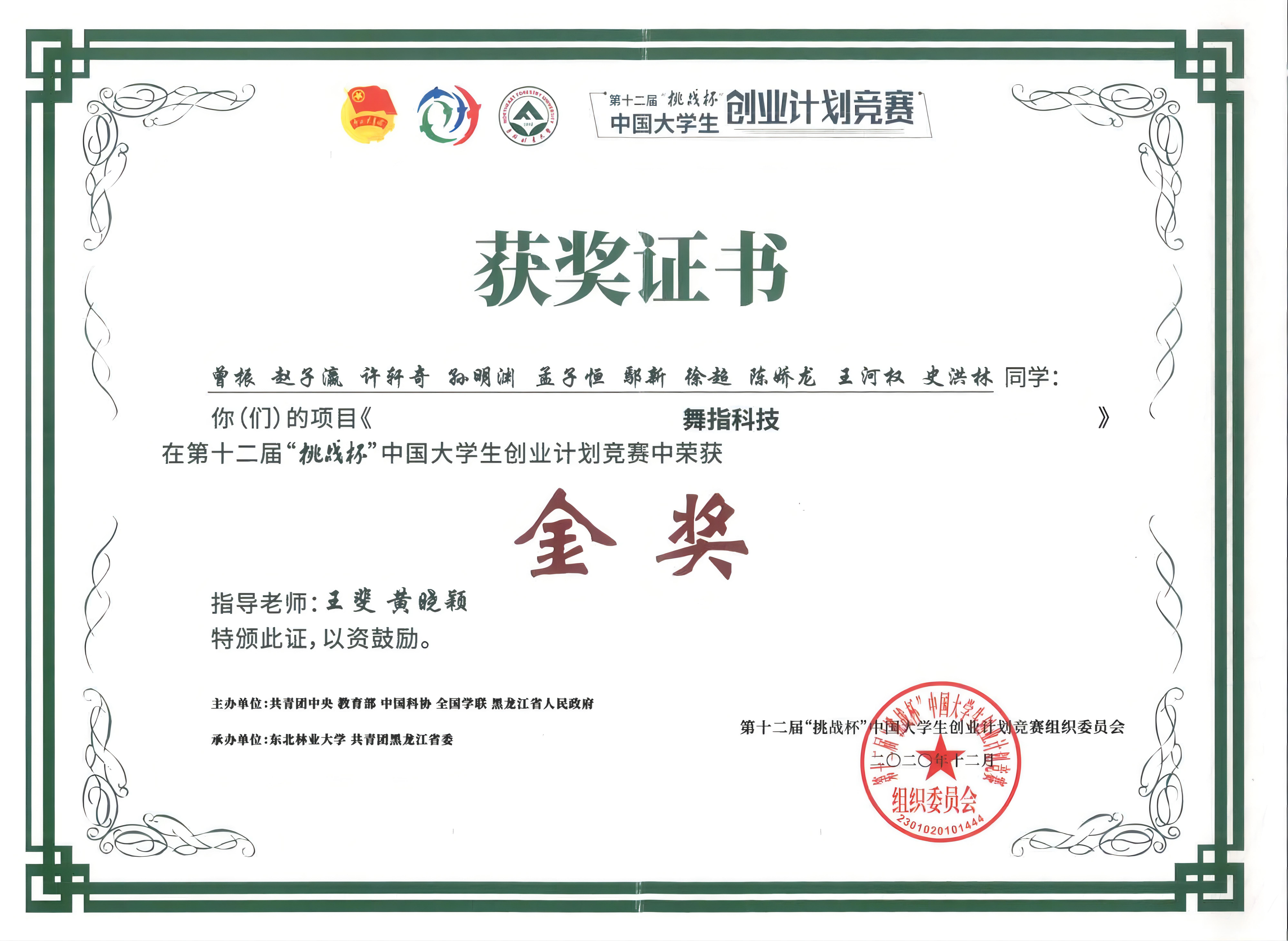 第十二届“挑战杯”中国大学生创业计划竞赛国赛金奖
