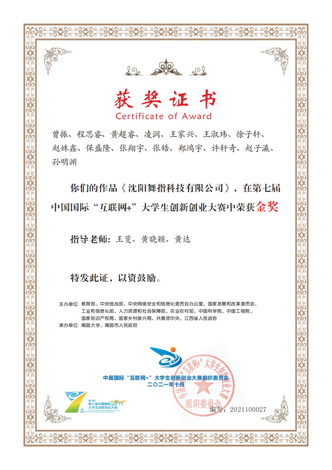第七届中国国际“互联网+”大学生创新创业大赛国赛金奖、