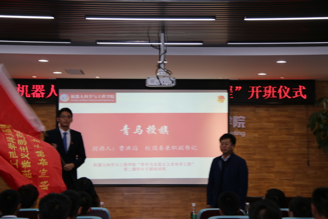 曹洪涛为机器人学院第二期“青年马克思主义者培养工程”培训班授旗。