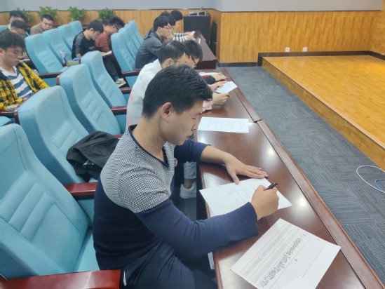 组织委员胡成勇以考试的方式检测参会人员的学习效果,旨在检验党员的党史学习教育情况,为日后党员发展提供参考依据。