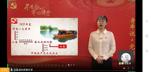 接着,大家一起观看了“青年说·党课”视频。通过视频大家重温了党在当初创立时的一段光辉历史,深入学习了“红船精神”。大家认识到,我们党以“开天辟地敢为人先”的精神,明确了肩负的重大责任,带领当时的先进分子找到了救国图强的新的思想武器--马克思主义;以“坚定理想百折不挠”的精神,坚定理想信念,保持一往无前的奋斗姿态,进行了新民主主义革命、社会主义建设和改革,开辟了中国特色社会主义道路;以“立党为公忠诚为民”的精神,始终坚持为人民服务的宗旨,把人民的幸福作为自己的奋斗目标。