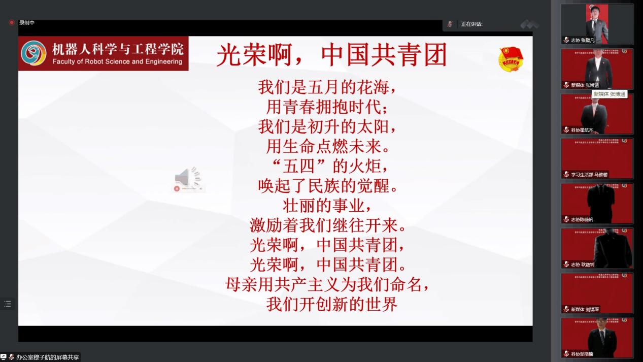 大会伊始,全体成员奏唱中华人民共和国国歌,并进行云端大合影。