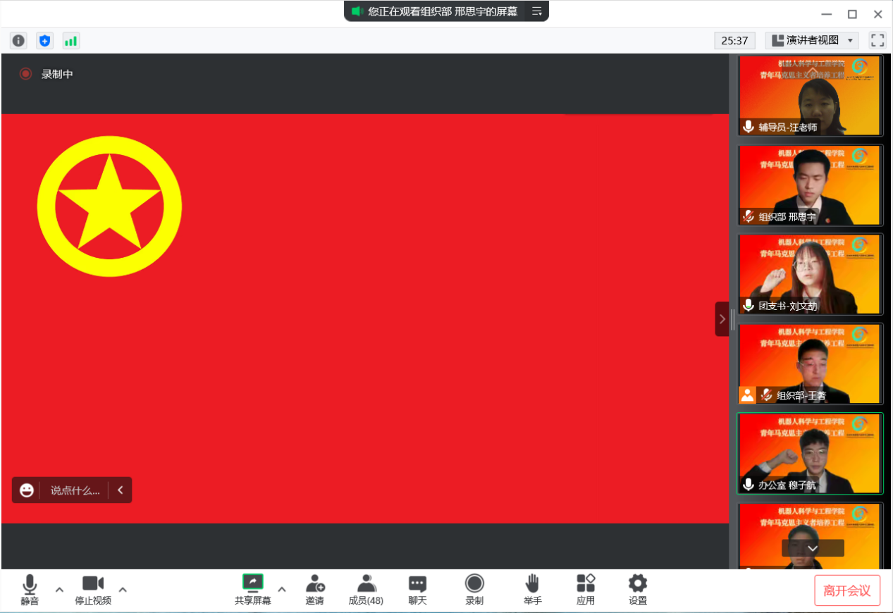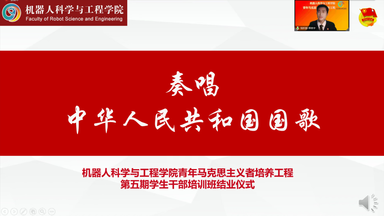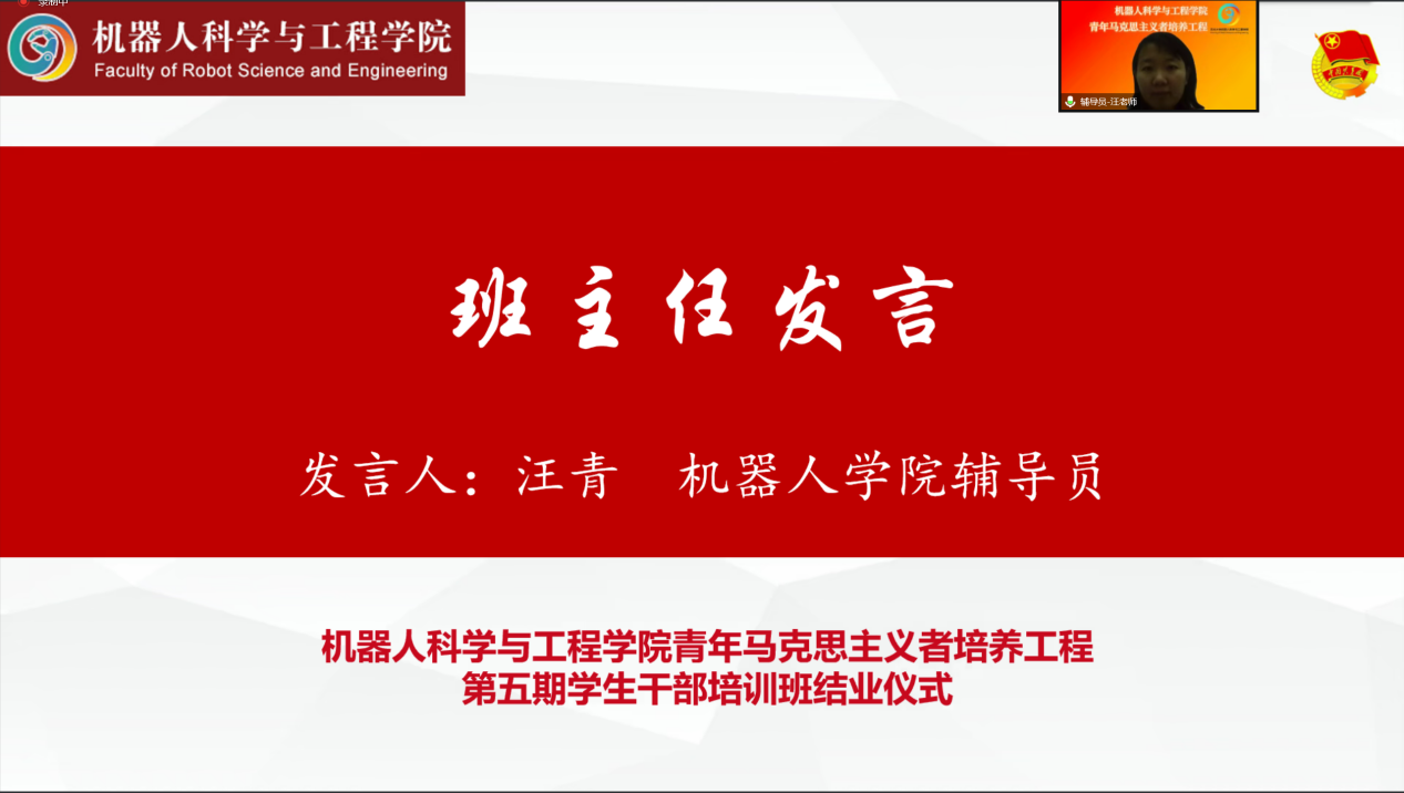 12月7日,机器人科学与工程学院“青年马克思主义者培养工程”第五期学生干部培训班结业仪式通过腾讯会议成功举办。机器人学院副院长严志刚出席会议,全体辅导员和学生干部参加会议。