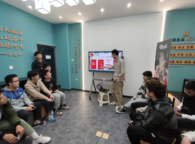 同时,各团支部组织大家观看红色影片,引导青年团员学习党史团史,“重走”百年征程路,“厚植”深深爱国情;支部团员积极分享“我与共青团的故事”,并以团日小组为基本单位开展主题读书会。“百年风华正茂,少年自有少年狂,以梦为马,不负韶华,五四精神,传承有我”的青春格言表达了同学们踔厉奋发、笃行不怠,永远跟党走,奋进新征程的坚定信念。