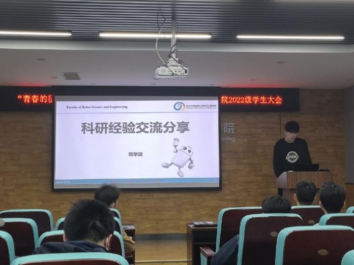 4月26日,机器人学院“弘扬学术之风,分享科研经验”交流会在建筑B302成功举办。本次分享会由学院研究生会主办,邀请2020级学生蒋学政进行交流分享,2022级全体研究生参与本次交流活动。