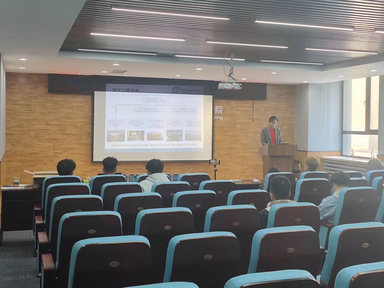 徐红丽从自主水下机器人的定义、用途、系统组成出发,详细介绍了自主水下机器人的国内外发展现状与趋势。她结合所在项目组的研究方向,指出水下机器人的发展前景和未来攻克的难题。徐红丽在报告中指出,水下机器人在海洋科学、环境保护、资源开发、国防安全等领域发挥了重要作用。她希望各位参赛选手能够积极培养在海洋科技与人工智能方面的创新意识和创新能力,推广创新研究成果。