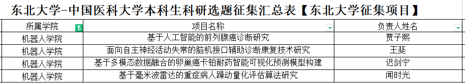 为进一步深化产学研用结合,使本科生科研训练工作更好地服务于高水平大学建设的整体发展规划,跨界融合推动创新型人才培养,实现学科、人才、科研、产业良性互动发展,2023年东北大学与中国医科大学开展本科生科研项目合作。经过前期面向全校征集科研选题,创新创业学院共支持立项项目16项,其中我院获立项4项,占比25%,创喜人成绩!此次我院在东北大学-中国医科大学本科生科研合作项目中,取得了进一步突破,彰显了机器人工程专业的鲜明特色,与多学科交叉的潜力和优势。